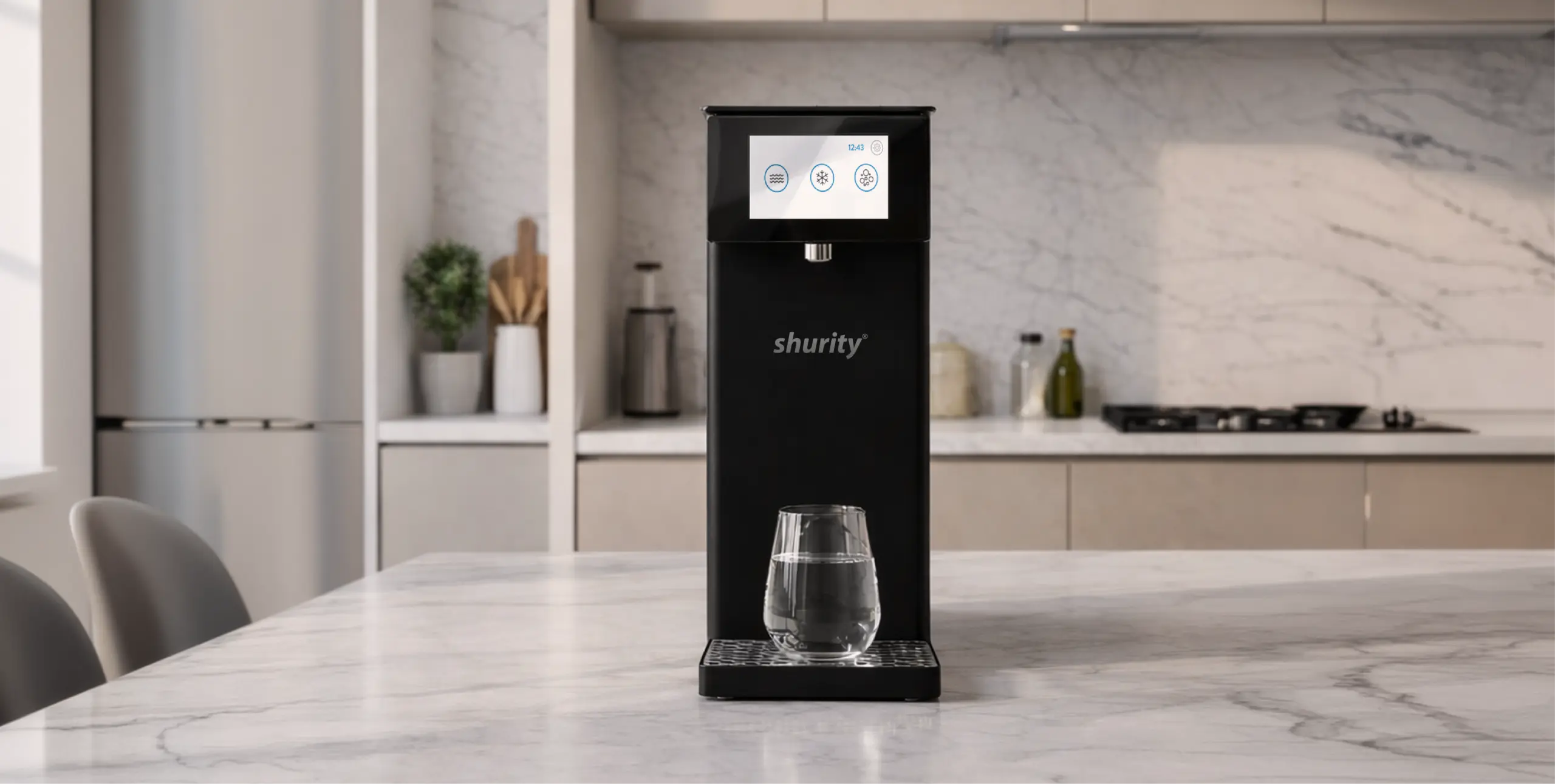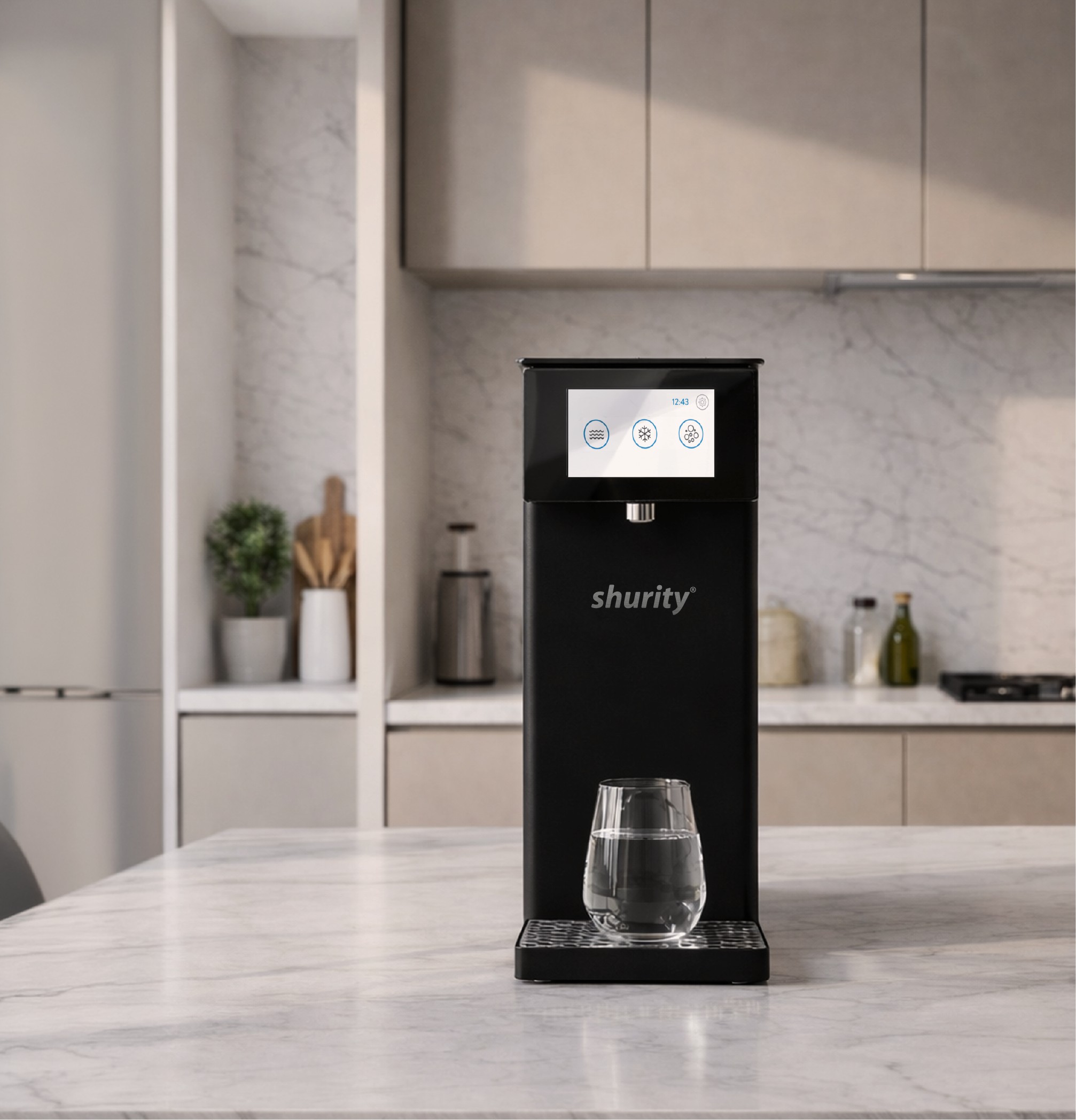 Shurity Kansas Electronic Refrigeratore acqua con Filtrazione Sopralavello 15Lt/h. Nero con display touch 4,3” – 3 Vie Liscia ambiente, fredda e gassata