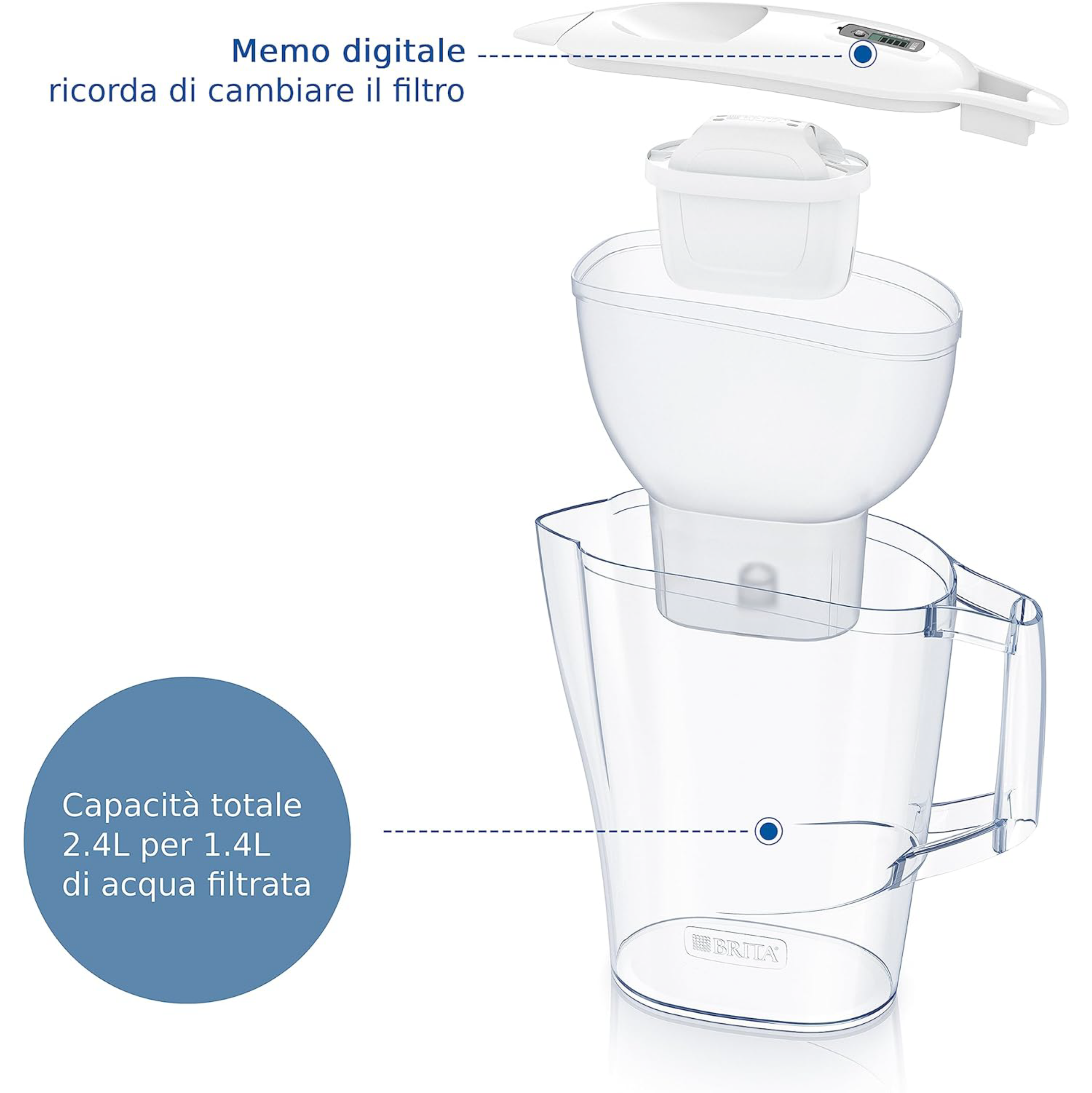 Brita Memo: Ogni 4 settimane ti ricorda quando è il momento di sostituire il filtro.INCLUSO: