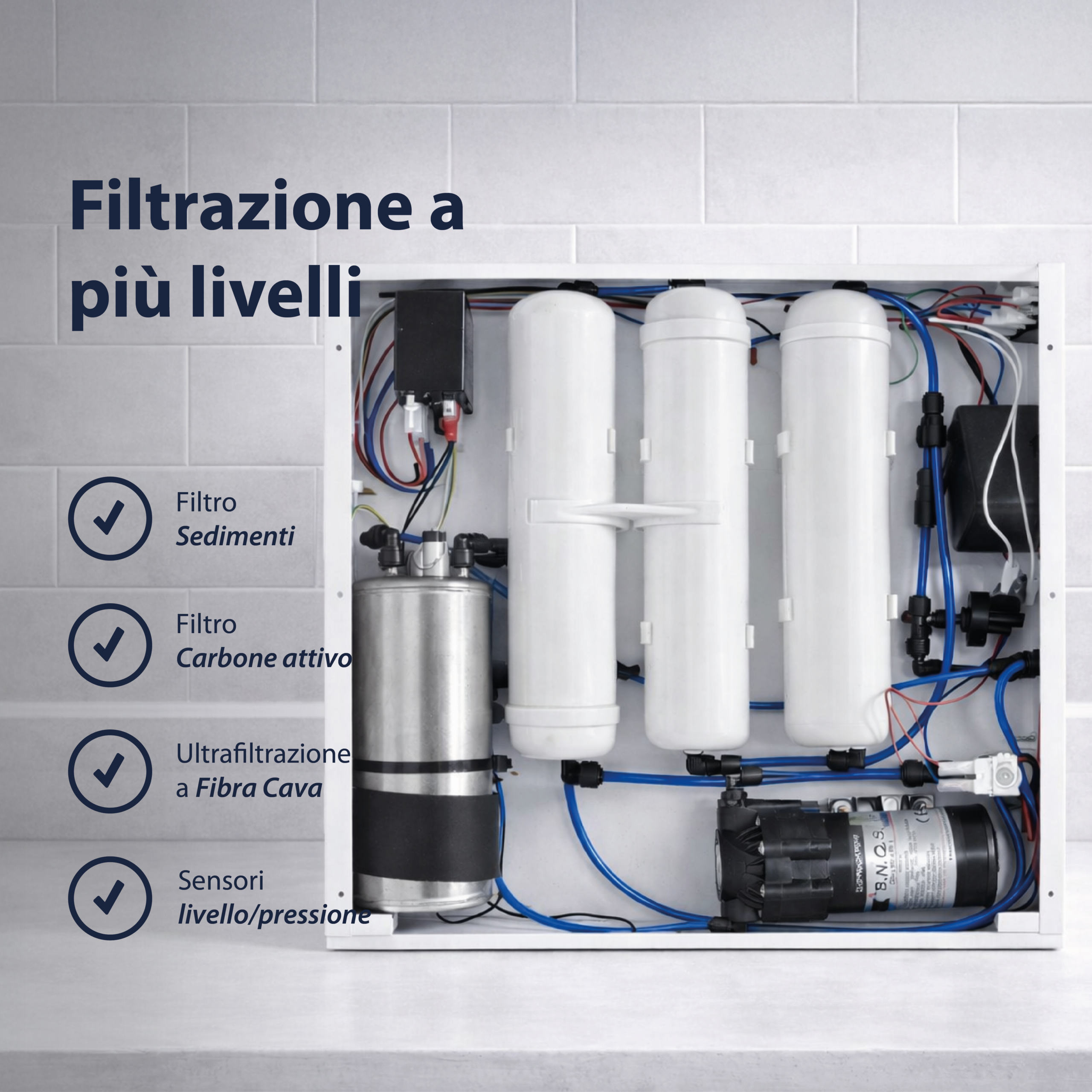 Grado di filtrazione: 0,01 micron (ultrafiltrazione a fibra cava)